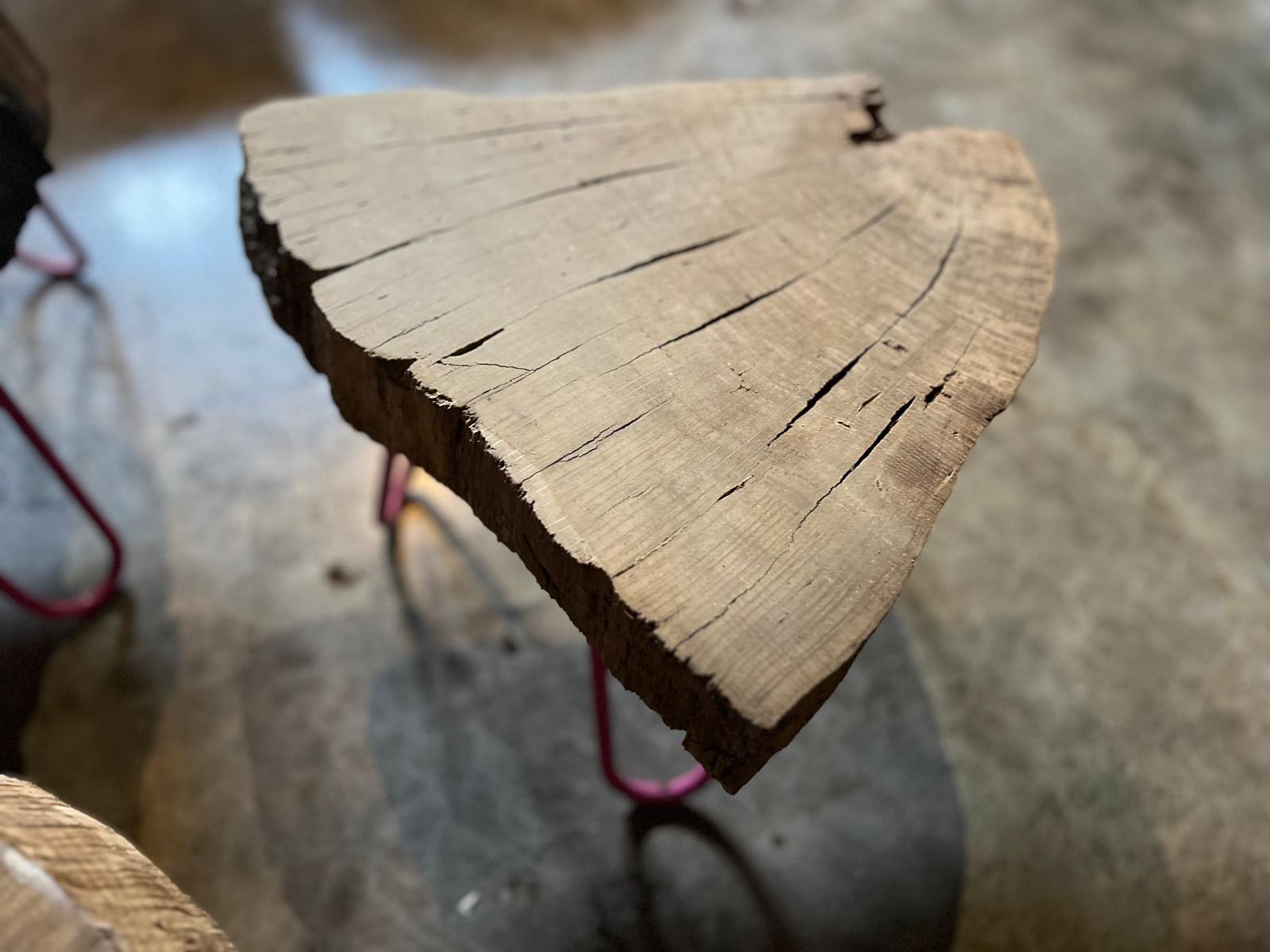 - Handcrafted chestnut segment table