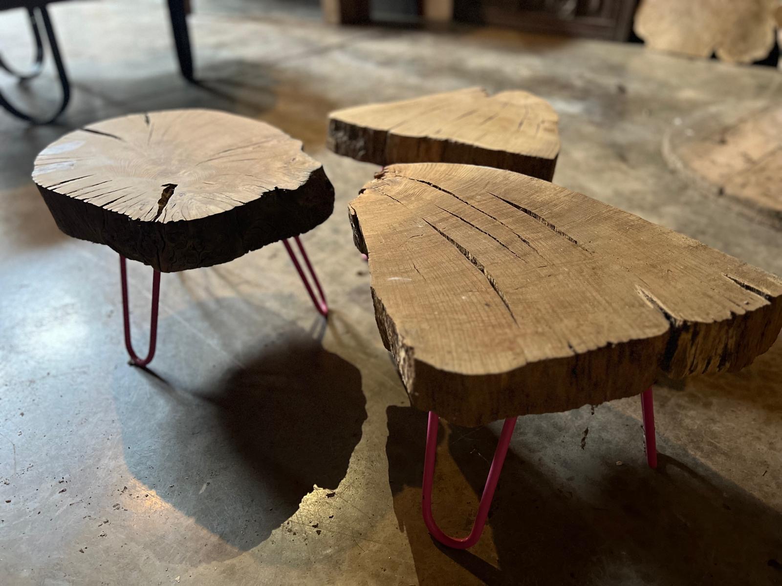 This handcrafted table is made from natural chestnut wood segments and paired with stylish hairpin legs, creating a versatile piece that suits both modern and rustic interiors. The rich texture and grain of the chestnut give each table a unique character, making it ideal as a side table, accent table, or decorative feature in contemporary or traditional spaces.